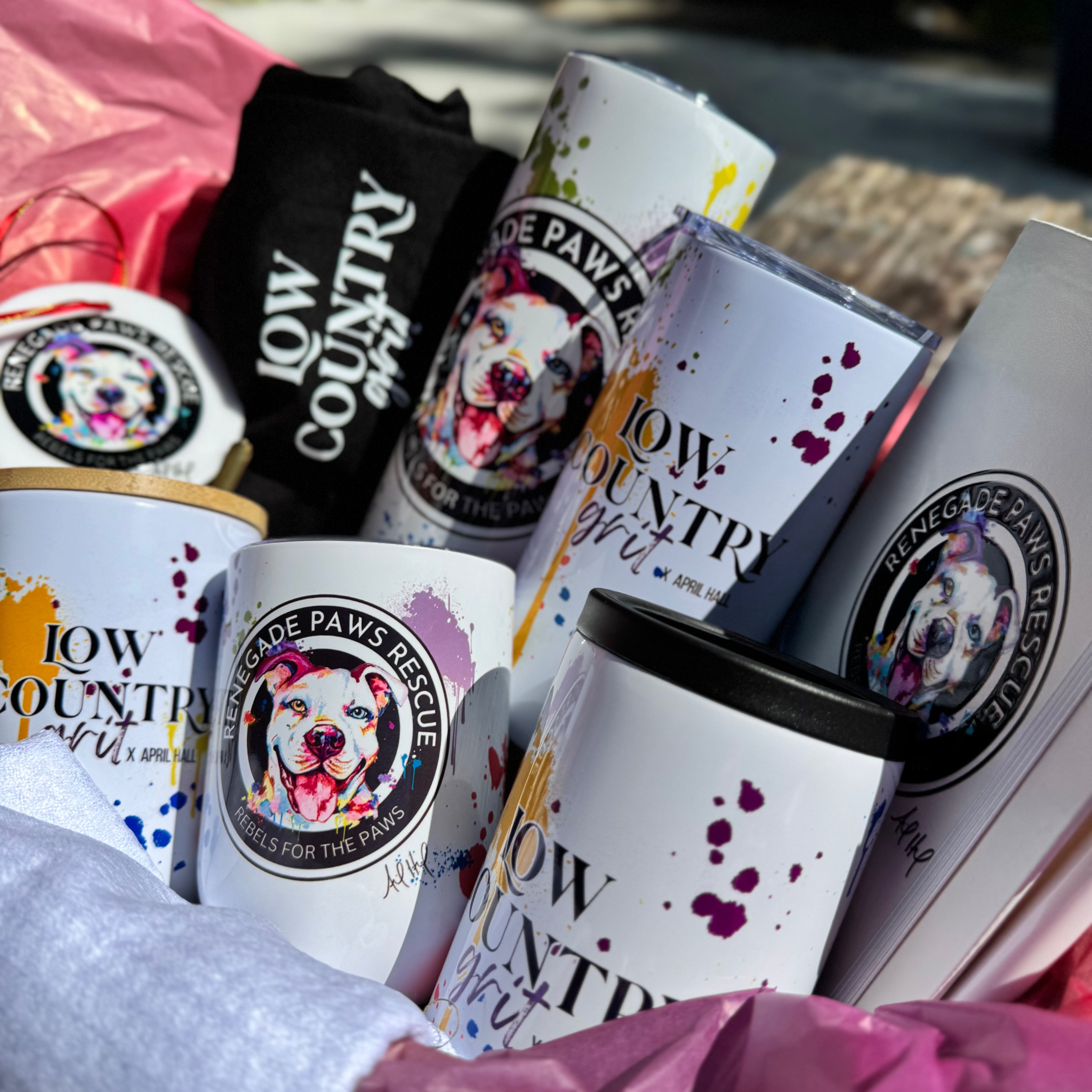 Sip in style for a cause. April’s playful brushstrokes bring Savannah sunsets to life, reminding us that every rescued pup deserves their golden hour. Perfect for wine, laughter, and toasting second chances.